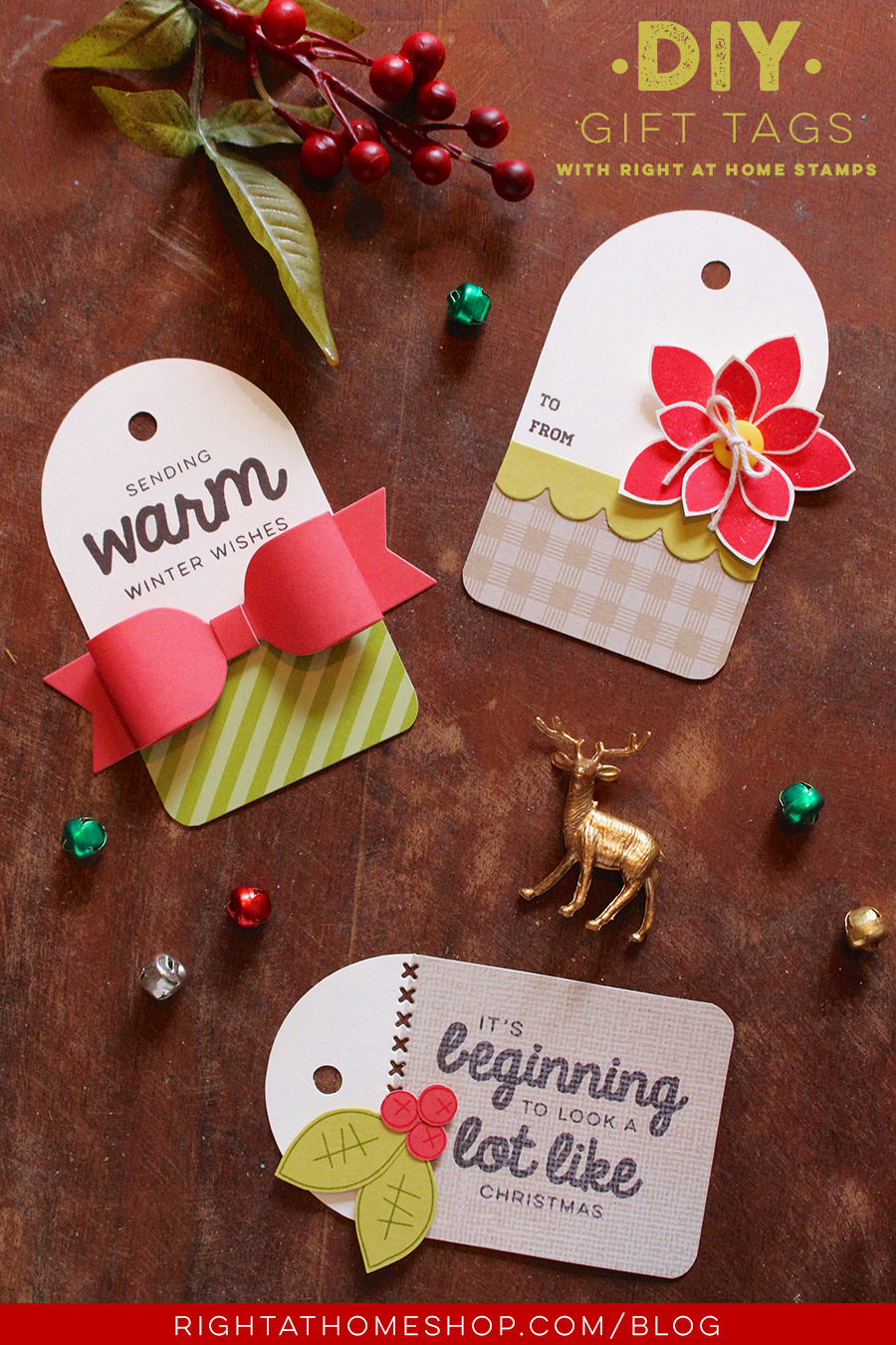 Today, I'm sharing three DIY gift tags with you that I created using my Right at Home Stamps Holiday collection. I may be a little biased, but I just love these stamps!