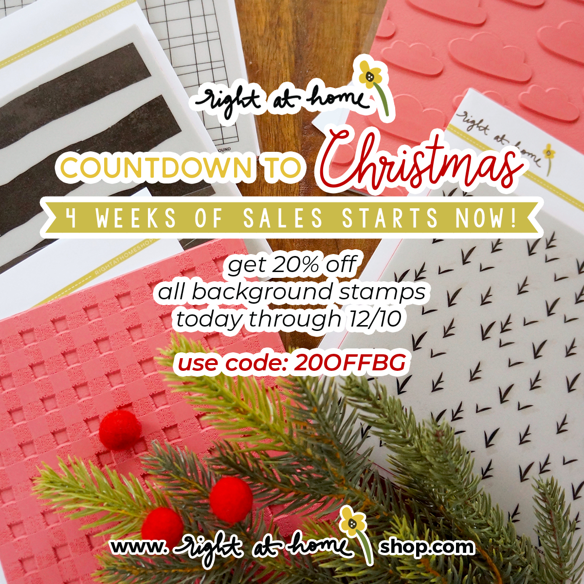 Need to stock up on a few backgrounds to round out your collection? Then today is the perfect time to! This week at Right at Home I’m offering 20% off all background stamps with code 20OFFBG.