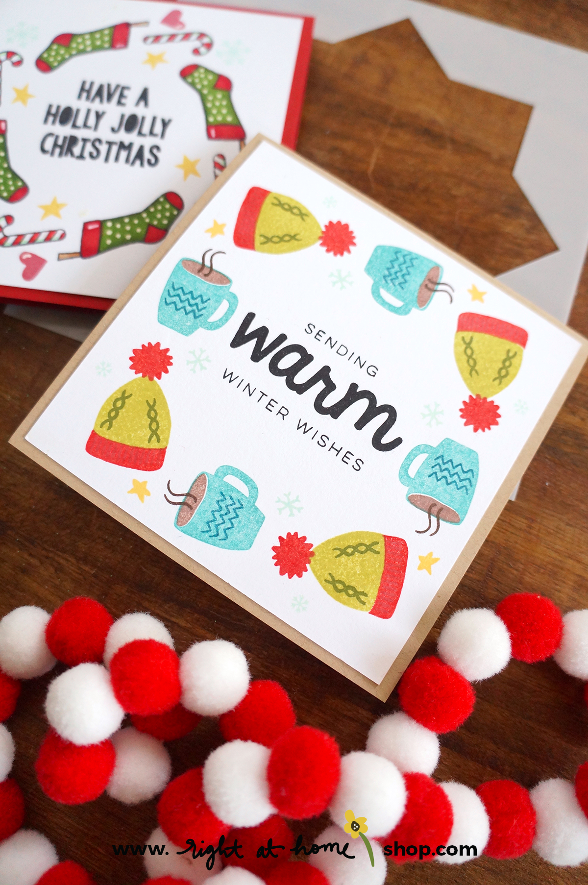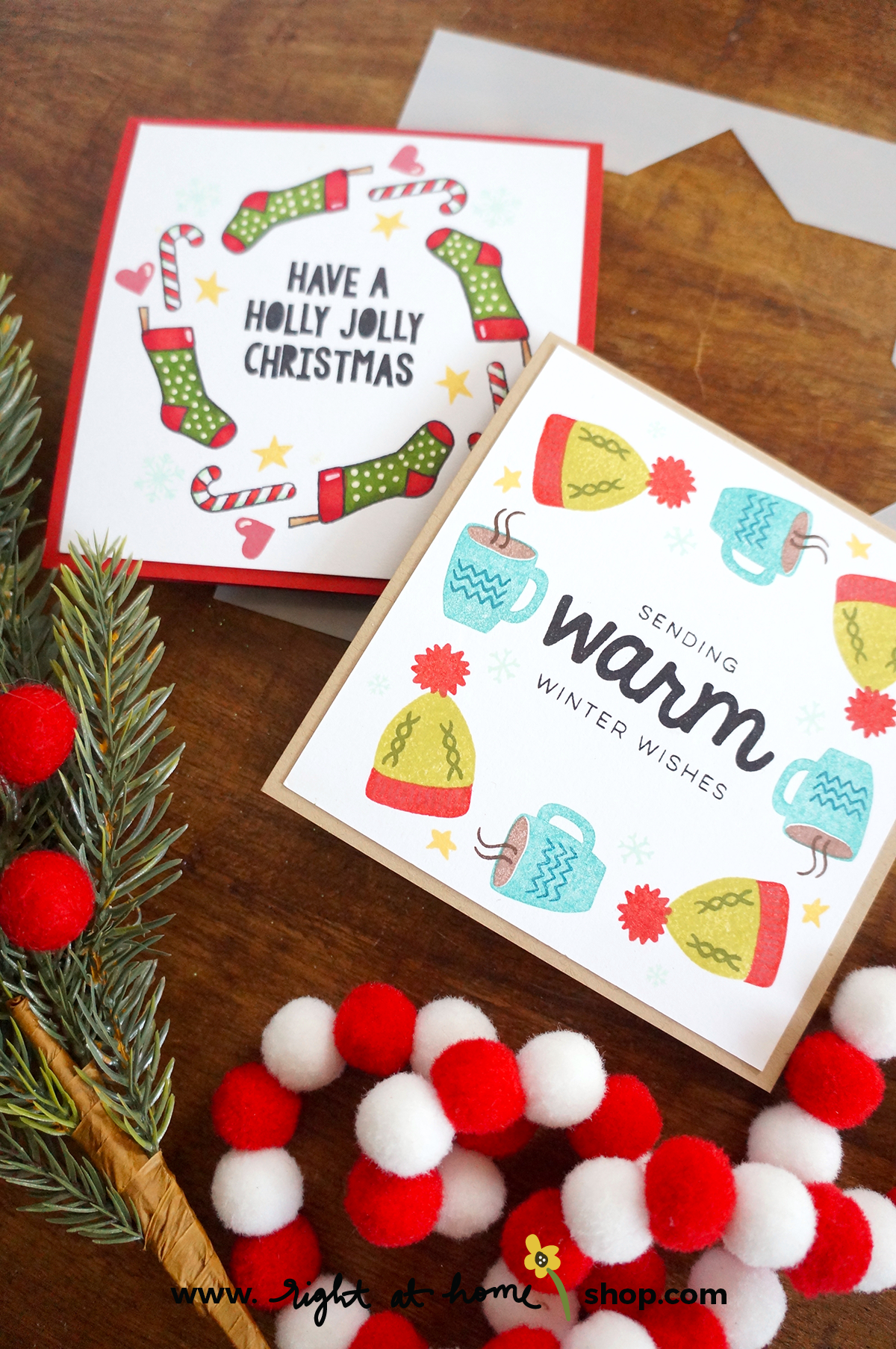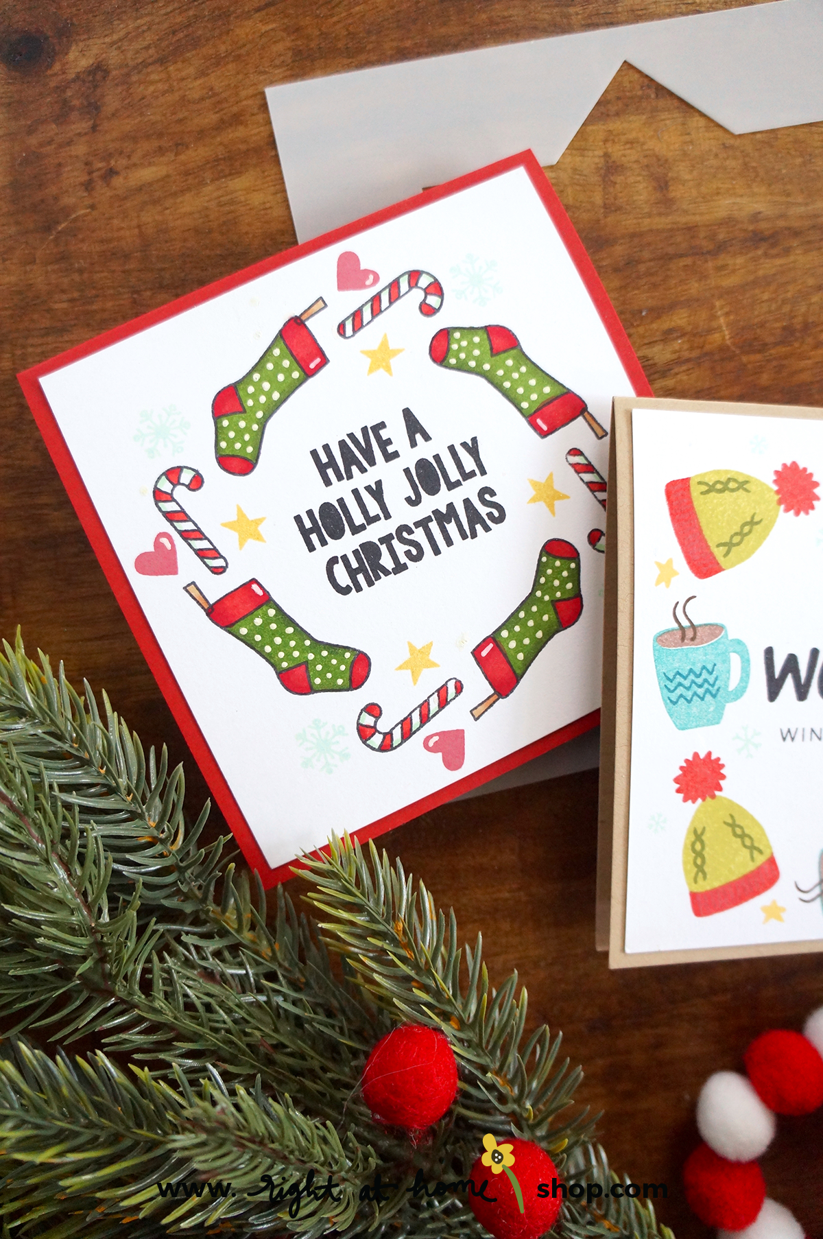 All the stamps featured in today’s post are older items from the Right at Home line, which means they may not be in your collection if you’re new here. Well, today’s the perfect time to fix that as this week at Right at Home I’m offering 20% off select holiday items with code 20OFFHOLIDAY!