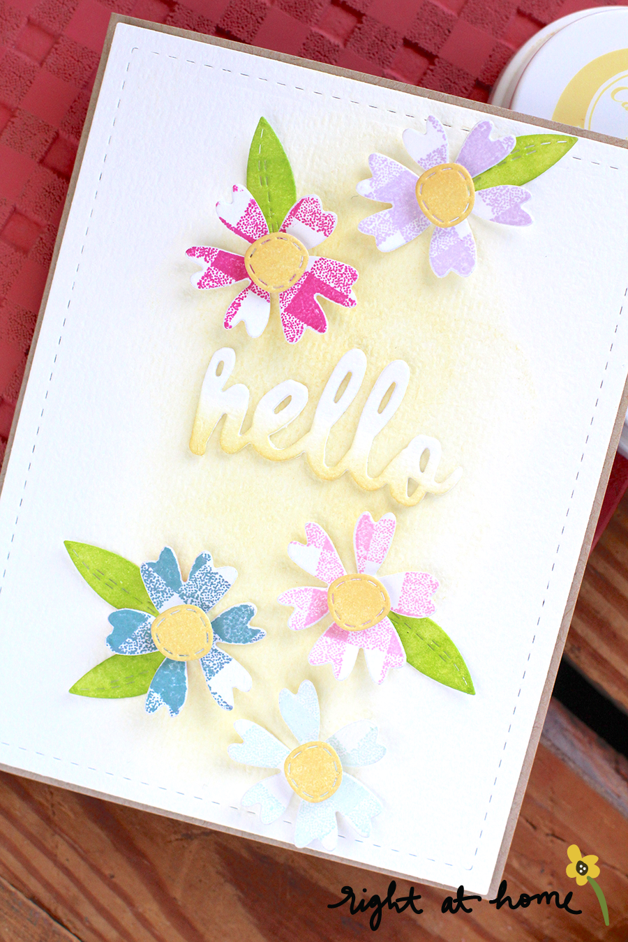 Gingham Background Stamped Flowers Hello Card // National Craft Month with Right at Home + Dear Paperlicious
