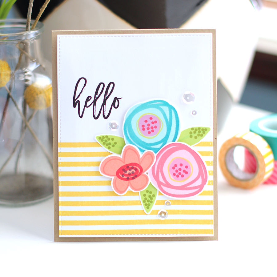 I used a variety of of the different layers included in the Abstract Florals set to build an arrangement of whimsical florals. If you happen to have this set and want a few ideas of how to arrange some of the pieces, you can download my stamping guide here. But, please know that you can mix and match them however you please. That is the beauty and fun of this set!