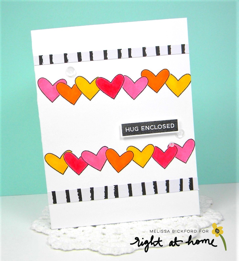 Happy Thursday to you, crafty friends! Melissa Bickford here with you and I’m super excited to be sharing a little something with you today. Since it is the season of love, I have created a card full of hearts and bright, cheery colors…two of my absolute favorite things.