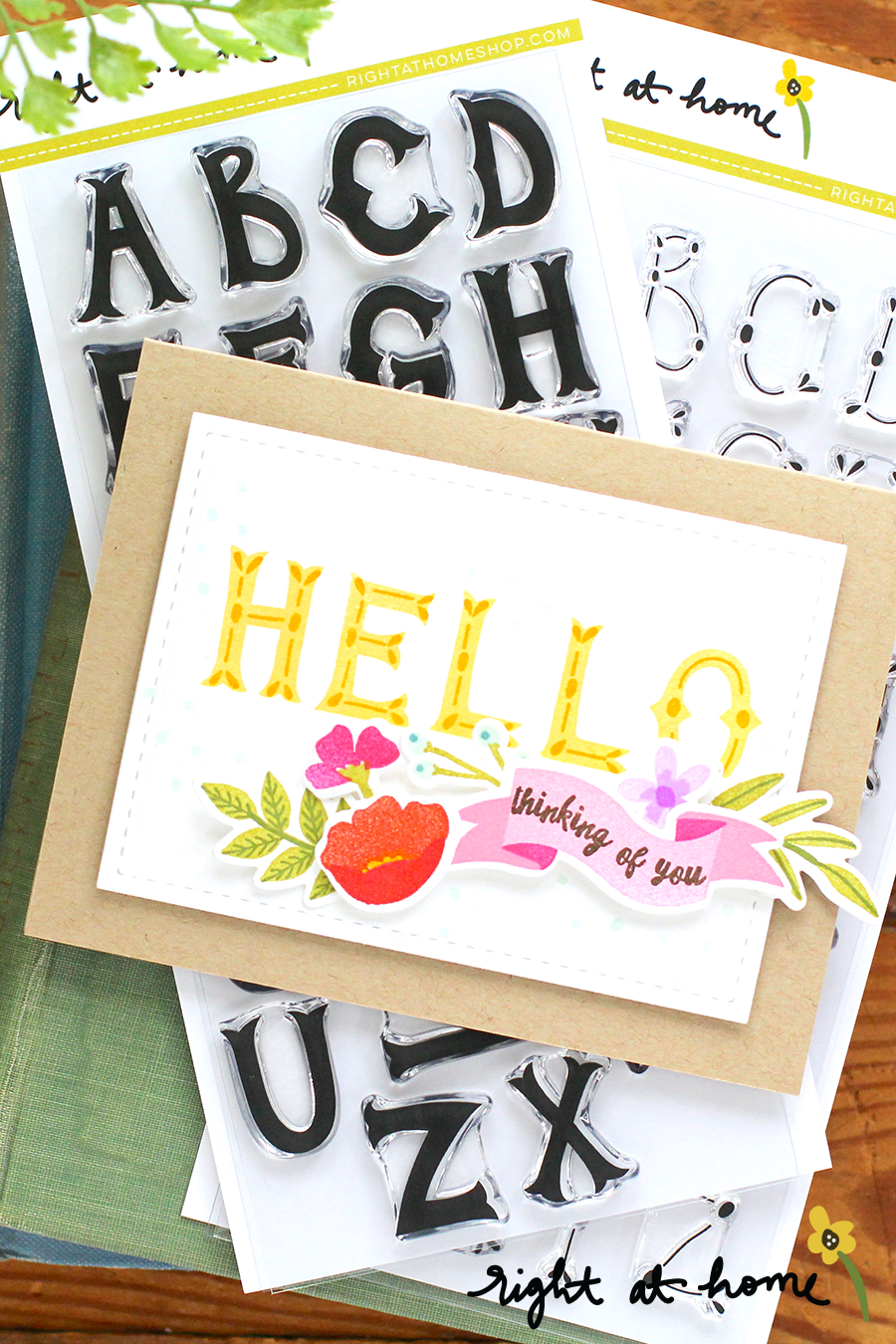 These two sets layer together to create a whimsical, folk-style sentiment. Start by stamping your solid letters in a light ink and add the detail letters overtop in a slightly darker color. Both look adorbs stamped on their own but are spectacular when used together.