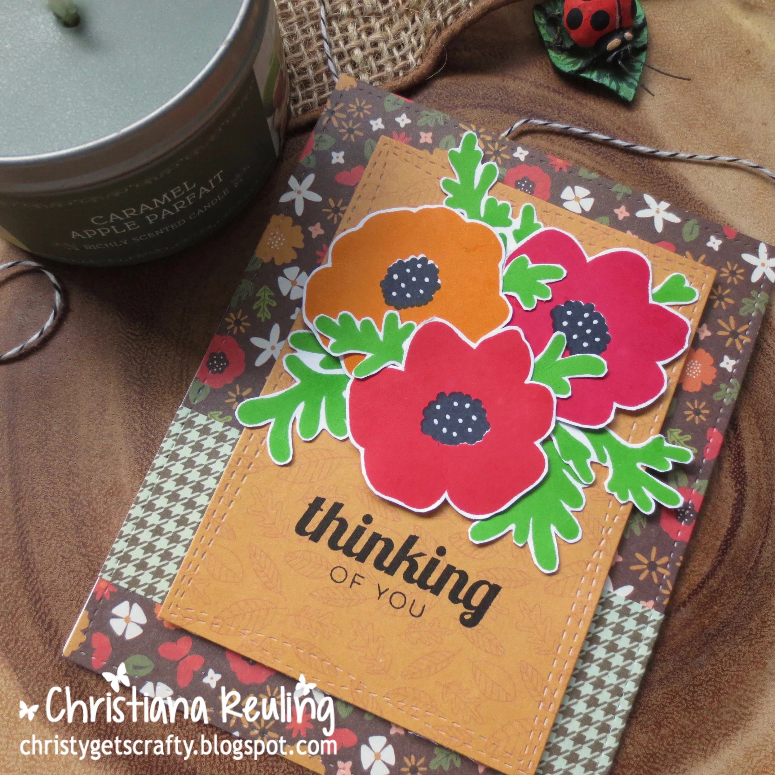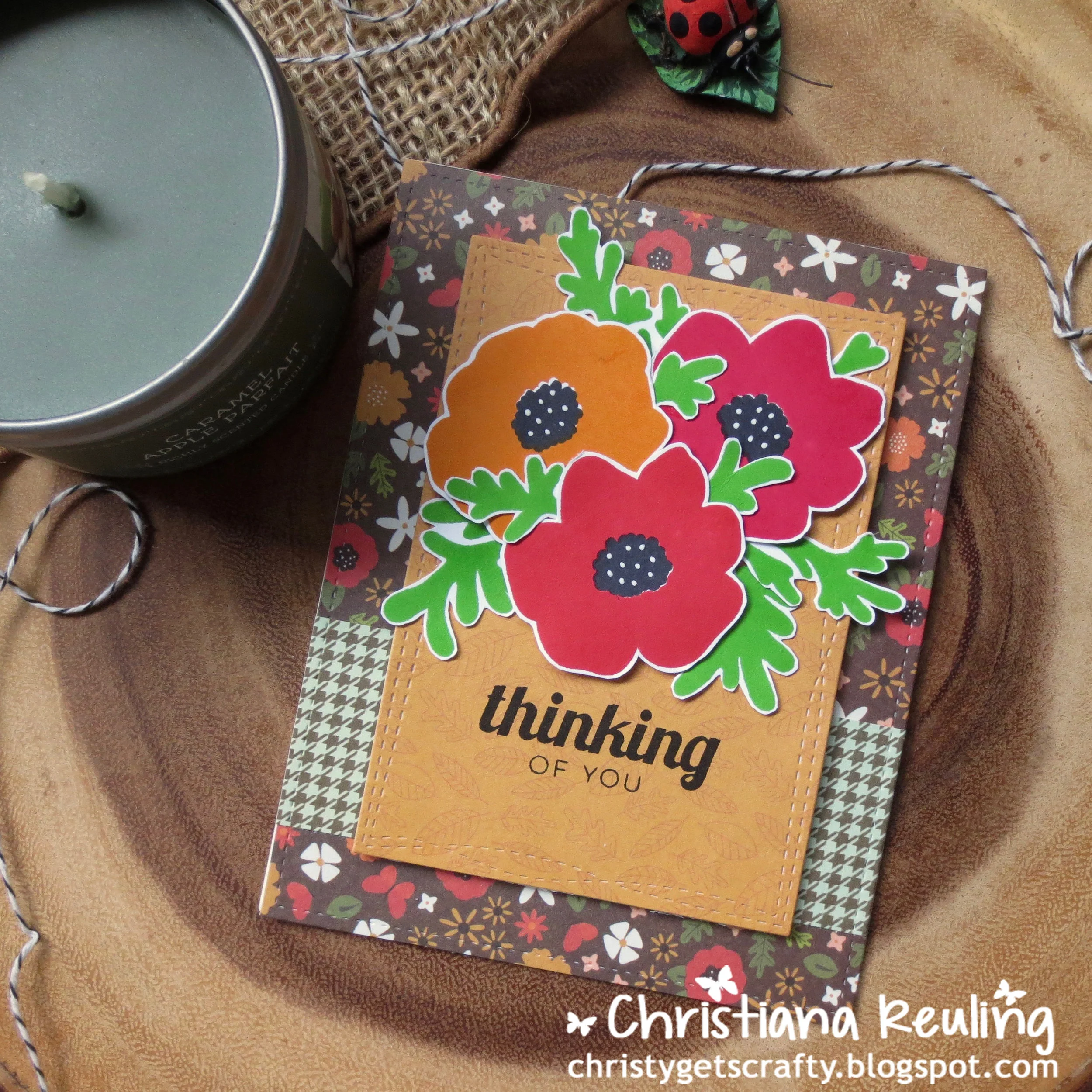 Hey friends, it's Christy here, and I'm happy to be guesting with Right at Home today. One of the great things about a three-step stamp set like Anemone, is that there is a lot of versatility. For today's card, I was inspired by some patterned paper to take just the base layer of the flowers and leaves and turn them into poppies. Thinking of you or sympathy cards can be the hardest to make, and when you need one, it's often unexpectedly, so it's good to have one or two on hand for those occasions.