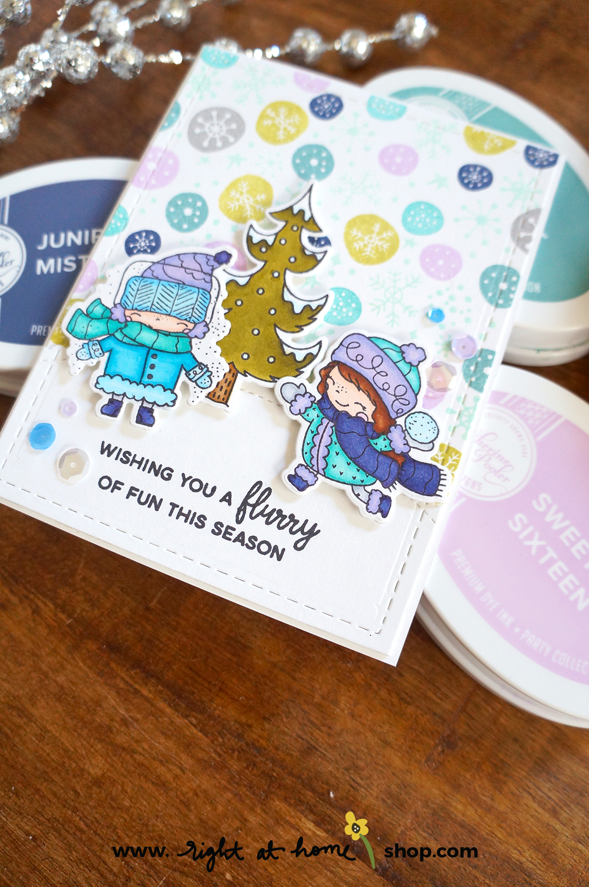I adhered the two panels flat together and then onto a card base and popped up all my stamped images. I finished off with a few sequins from my Winter Wonderland Sequin Mix as the colors match this card perfectly!